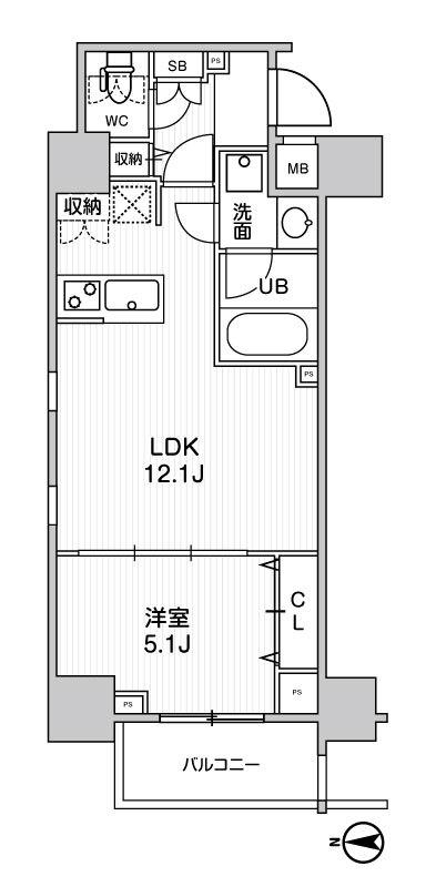 | 間取り詳細 | LDK 12.1畳 、 洋室 5.1畳 |