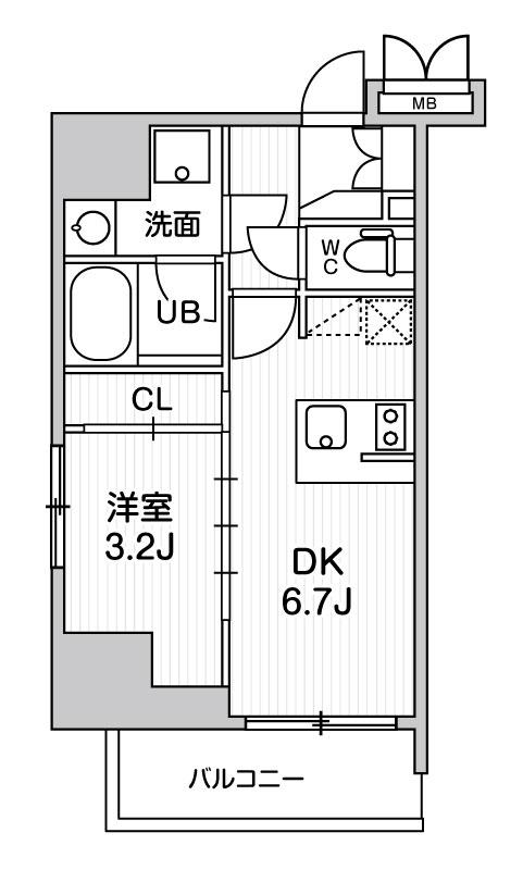 | 間取り詳細 | DK 6.7畳 、 洋室 3.2畳 |