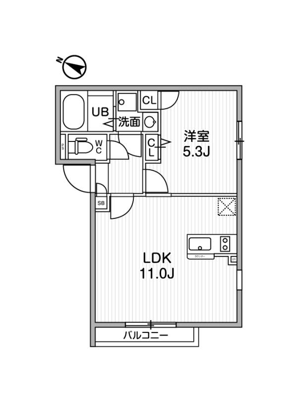 | 間取り詳細 | LDK 11畳 、 洋室 5.3畳 |