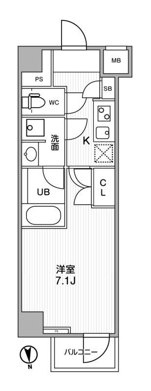 | 間取り | 1K | 面積 | 25.05㎡ |