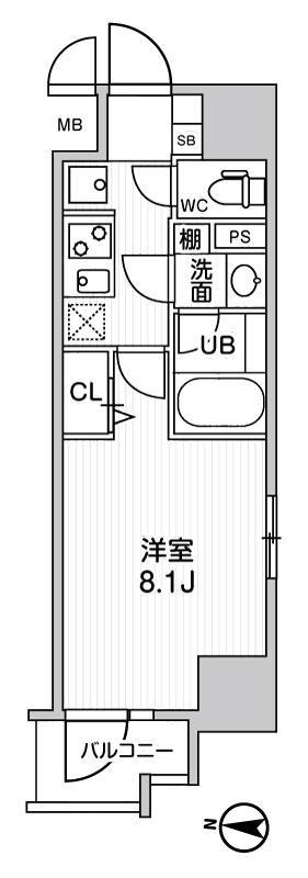 | 間取り | 1K | 面積 | 26.61㎡ |