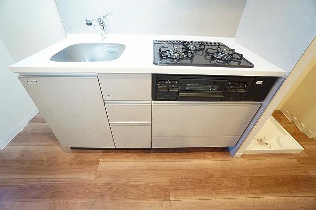 | 設備 | ガス(都市ガス)、インターホン(TVモニター付き)、防犯カメラ、人感センサー、ダブルロック、オートロック、宅配ボックス、専用ゴミ置き場(あり)、フローリング、ベランダ・バルコニー、下駄箱、バス・トイレ別(別室)、シャワー、浴室乾燥機、脱衣所、給湯、温水洗浄便座、洗面所独立、シャンプードレッサー、洗濯機置き場(室内)、コンロ設置済、コンロ口数(3)、コンロ種類(都市ガス)、グリル、システムキッチン、エアコン、エアコン台数(1)、24H換気システム、BS、地デジ(UHF)、光ファイバー、インターネット使用料無料 | ||