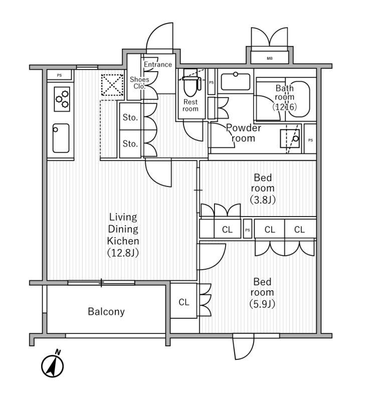 | 間取り | 2LDK | 面積 | 56.13㎡ |
